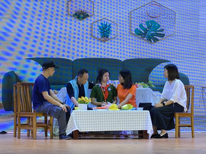 接着家长们和孩子们一起观看《孩子,我该拿什么来爱你》情景剧,故事讲述孩子丫丫刚从老家到新班级,因为爸妈工作繁忙,没时间陪伴她,又不善沟通,导致她性格越来越内向,不能适应新的学校生活,被同学嘲笑,与同学打架等。这时,丫丫班主任的介入,让丫丫爸妈发现自身家庭教育不足,积极反思与学习,改善了亲子关系。