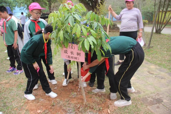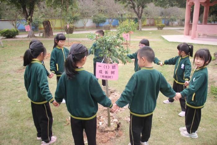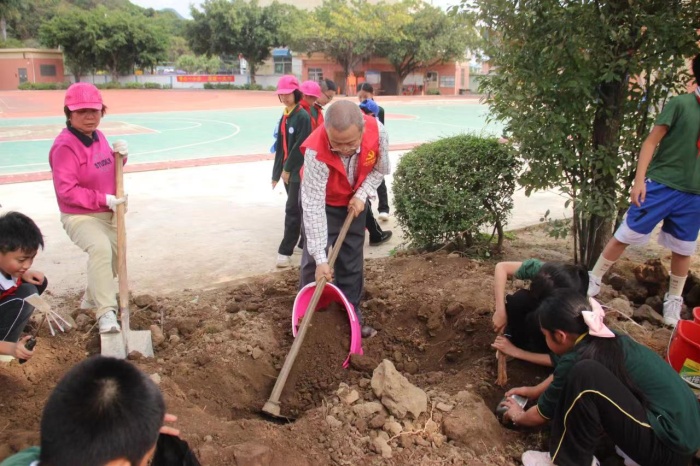 仪式上,学生们集体诵读了《二十四节气歌》,铿锵有力的朗读声响彻校园。随后,谭校长宣布开耕节开始。各班班主任及家长代表带领学生开展植树培土仪式和劳动教育种植体验课程,让整个“开耕节”有了“肩担耕犁启春耕”的仪式感。农耕文化是中国传统文化的重要组成部分,而学校举办“开耕节”,就是要让学生们能深刻领悟“耕读传家”的内涵,体味农民朋友的艰辛不易。