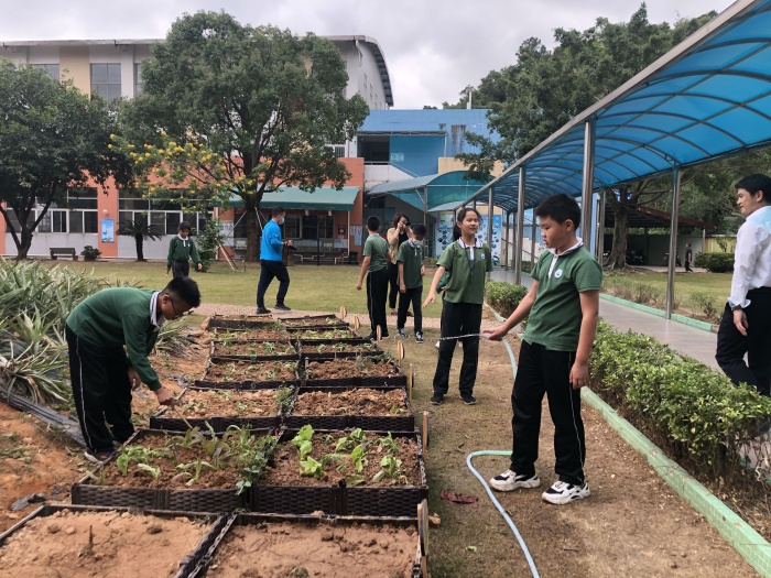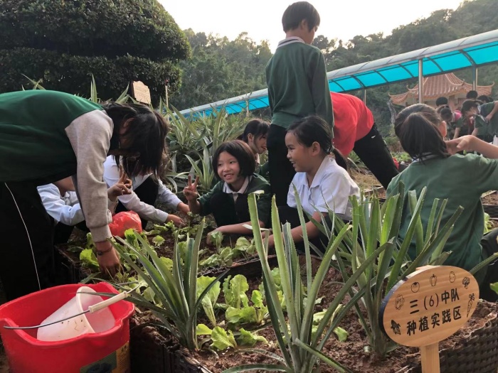 在劳动实践课基地,谭瑞香校长向林伟强书记介绍了学校乡村少年宫的特色种植课,每个班级都拥有自己的种植实践区,让孩子们能够走出教室,走近绿色,通过自己的劳动见证绿色的成长,享受生命的感动。