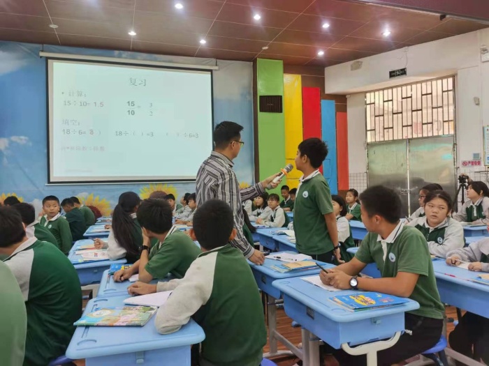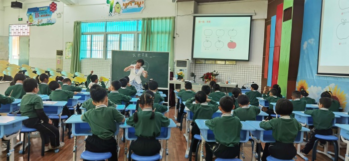 11月12日数学专场,梁海英副校长打冲锋。她执教二年级《7的乘法口诀》,以有趣的7块七巧板为主线让学生认识7的乘法口诀,运用口诀,背诵口诀。学生在趣中学,在趣中练。接着,邱继发副校长展示的是六年级的《比的意义》;李健主任展示的是三年级的《多位数乘一位数》;阮雪华主任展示的是二年级的《解决问题》,他们的课或语言幽默风趣,或内容生动具体,或循循善诱,孩子们听得津津有味,收获丰富。