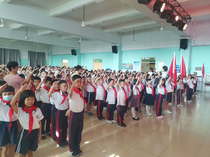 为庆祝中国少先队建队72周年、纪念“十一三”建队日,10月11日,石岐区厚兴郑伟权学校少工委举行“请党放心 强国有我”主题队会暨二年级第二批新队员入队仪式。