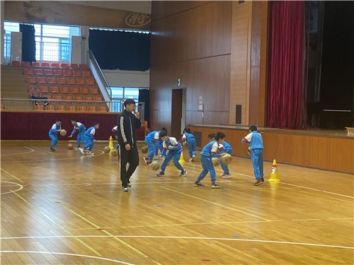 第二节课观摩课例,由本校余集汉老师授课水平二·四年级《小篮球高低运球》。本课设计主线紧跟当前时事,通过“神舟十三号”、“星球大战”两大情景贯穿始终,课堂组织取用生动有趣的教学方法和手段,促进学生技能掌握。技能学习是学生自主建构的过程,技能教学的最佳办法就是到现实生活的真实环境中去感受体验,利用直接经验来学习。因此,余老师针对水平段学情,抓住共性问题,创新设计有效的练习方法,通过小游戏“运送能量碟”引导学生学练高低运球技能,为了进一步解决重点,突破难点,在创设的“星球大战”游戏中让学生分组自主挑战难度,充分调动了学生练习的积极性,收到了很好的学习效果。余老师扎实的教学基本功、生动的语言、灵活多变的教学办法、高效的队伍调动、器材的开发、场地的运用,给每位听课教师留下了深刻的反思。