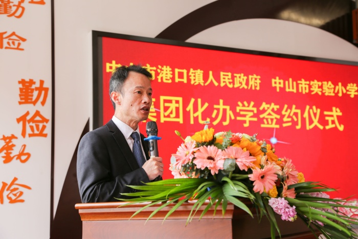 黄金辉书记、黎国喜副局长和徐铭侃校长分别在仪式上致辞。他们都表示,创办中山市实验小学教育集团,是为了进一步深化基础教育综合改革,创新办学模式,推动基础教育优质均衡发展,满足人民群众“上好学”的需求,对中山的基础教育、港口的优质教育资源和市实验小学的可持续高质量发展均有着十分重要的意义,希望市实验小学教育集团充分发挥优质教育资源的影响、辐射、示范作用,彰显集团化办学优势,推动集团成员学校共同发展,办成有特色有影响的省级优质特色教育集团。希望中山市实验小学教育集团充分发挥优质教育资源的影响、辐射、示范作用,带动大丰小学快速发展!