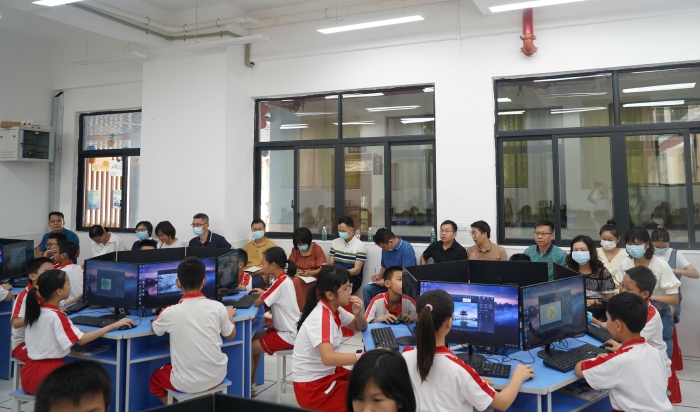 本次韶关行的重磅议程之一是送教活动。在南雄市黎灿学校和南雄市永康路道平小学,中山教研基地的三位教师为两个基地成员和南雄市信息技术教师呈现了三节精彩的现场送教课例,中山、韶关两市的信息技术教师通过线上方式进行课例观摩,远赴潮州支教的信息技术教师也积极参加研讨,线上观摩人数达两千多人次。