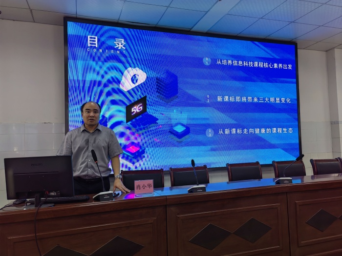 9月24日上午,南雄市教师发展中心信息技术教研员肖小华在南雄市第二小学作了题为《重核心素养·育数字人才》的专题讲座,他从“从培养信息科技课程核心素养出发”、“新课标即将带来三大明显变化”、“从新课标走向健康的课程生态”三个方面进行深入浅出的交流。