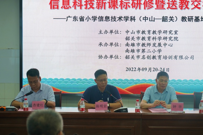 云天收夏色,木叶动秋声。为发挥广东省基础教育教研基地的辐射作用,为进一步提高信息科技教师的专业素养,9月20日至24日,广东省小学信息技术(中山)教研基地一行25人赴韶关南雄开展信息科技新课标研修暨送教交流活动。本次活动以“线上+线下”混合研修的方式,中韶两地教师聚焦新课标、研讨新课程、研磨新课堂,参与观摩交流人数两千多人次,有效探索了省教研基地建设新模式。