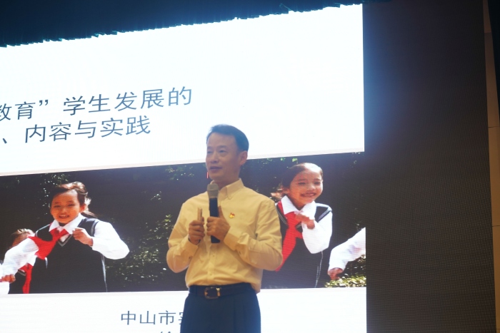 会议上,徐铭侃校长围绕着德、智、体、美、劳五个方面,作了题为“‘智趣教育’学生发展的目标、内容与实践”的讲座。首先,徐校长徐校长选取了《习近平总书记关于教育的重要论述》中关于“教育公平”的讲话,分析当前教育仍处在发展阶段,教育资源更均衡、更公平是人民对美好教育的向往。要学习二十大的精神,全面贯彻党的教育方针,落实立德树人根本任务。