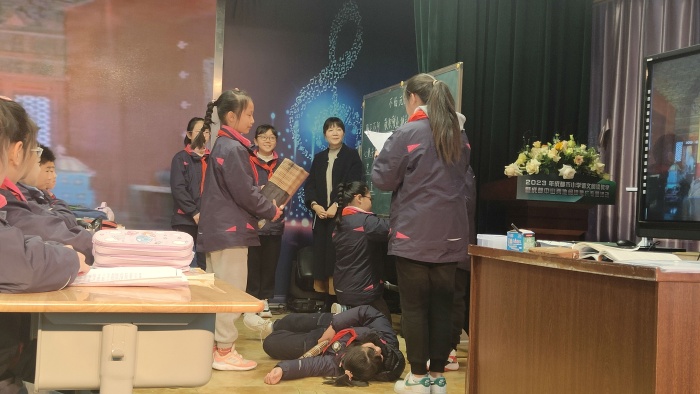 第一节课是成都市高新区芳草小学王鸿老师执教的五年级下册《不怕死的太史》,王老师通过文学性阅读任务群策略,探究式学习方式,采用抓关键词批注、查一查背景、演一演故事,带领孩子们一起展示单篇阅读教学方法。
