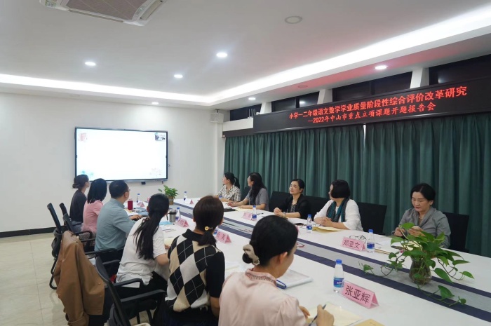 日月开新元,天地又一春。沐浴着春日的阳光,怀揣着对教研的热忱,2023年4月6日上午,中山市实验小学顺利召开2022年中山市教育科研重点课题《小学一二年级语文数学学业质量阶段性综合评价改革研究》开题论证会。