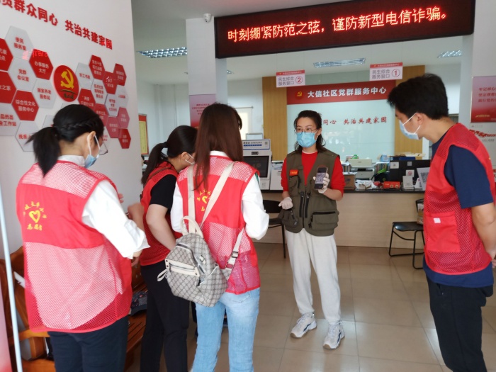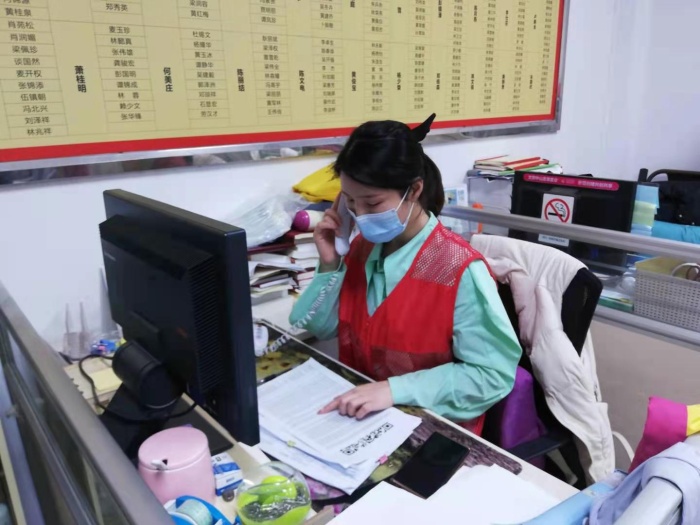 班主任们首先对家长进行志愿活动的简单培训和工作任务布置,并把志愿工作者分成两组开展活动。第一组在社区工作人员的带领下,老师和家长志愿者们挨家挨户上门协助居民们扫码进行健康申报。遇到老人们在家,大家就耐心的讲解填写步骤,帮助他们登记信息。第二组留守在社区办公室的志愿者们在社区负责人的安排下打电话询问居民假期外出、疫苗接种、最后一次核酸时间、有无外市亲朋来访等情况,并将获得的信息录入系统。