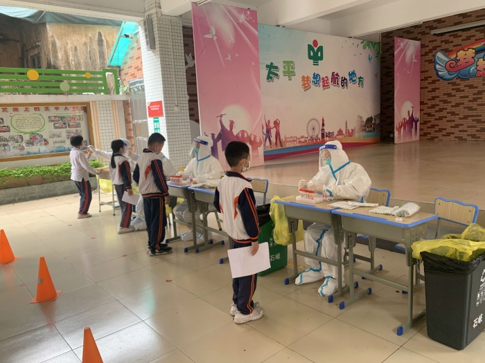 为进一步加强疫情防控工作,切实保障全体师生员工的生命安全和身心健康,根据上级部门及学校疫情防控安排,4月8日上午,石岐太平小学全体师生分批次在校园内进行了核酸检测。