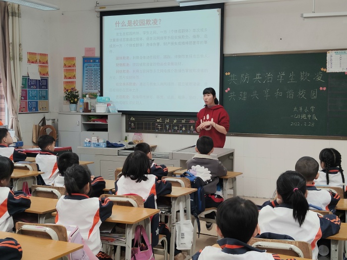 在第27个全国中小学生安全教育日来临之际,为进一步加强学生法治教育,规范学生行为,促进学生身心健康,努力打造最安全、最阳光的校园,石岐太平小学积极行动起来,以多种形式开展了“共防共治学生欺凌,共建共享和谐校园”为主题的中小学生“安全教育日”专题教育活动。