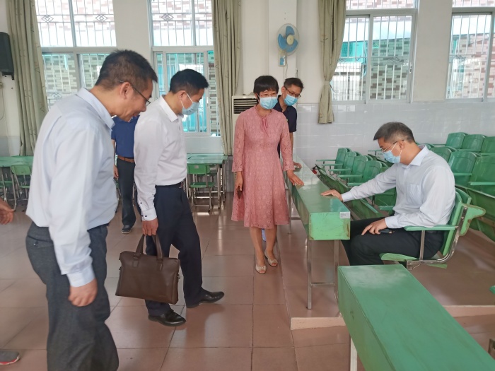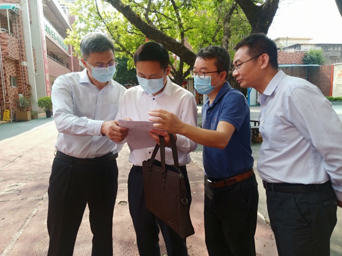 领导们首先了解了近日中山突发事件对学校教育教学工作的影响,对学校师生在沙溪、大涌、西区三地旅居史情况进行了详细询问,认真听取了刘晓君校长对师生返校情况和学校疫情防控部署的汇报。