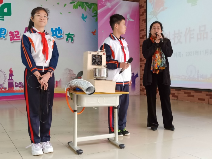升旗仪式后,校会拉开序幕。品学兼优的“小发明家”六2班赵梓涛同学展示了他的科技创新作品,台上的他,熟练地演示并分享了作品——“抽烟机”的工作原理。随后,韩主任采访了他的创新作品的创作来源以及创新之处。台下的同学们听得津津有味,若有所思。赵子涛同学那精益求精、锲而不舍的探索精神在同学们的心中扎根,学校鼓励大家学习他善于观察生活中的各类现象,勤于思考,遇到问题努力想出各种点子去实践、去解决的能力。