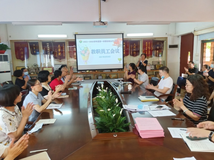 为确保2021年秋季开学工作顺利进行,8月30日上午,石岐太平小学全体教职工汇聚一堂,以饱满的精神、高昂的激情,在和谐的氛围中召开了2021学年全体教职工会议。新学期太平小学又增加了六位年轻有为的教师,他们以饱满的热情、昂扬的斗志加入太平小学大家庭!