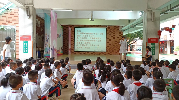 金风送爽,桂子飘香。在全国第31个“全国爱牙日”来临之际,为了让学生对牙齿有更深入了解,培养爱护牙齿、保护牙齿的意识,从而养成口腔清洁的好习惯。2022年9月19日,石岐太平小学开展了“护牙健齿少年强 健康中华民族兴”的口腔健康教育宣传系列活动。活动特意诚邀口腔诊所的陈医生,给同学们进行了一次有趣的口腔健康知识讲座。