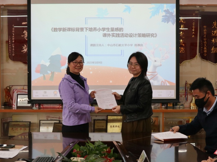 历添新岁月,教研正当时,为进一步提升教师的科研水平,推进学校全面发展。2023年1月9日上午,中山市石岐太平小学开展了2022年区级教育科研立项课题开题活动。作为本学年度区级第一场开题活动,石岐太平小学的两个课题组成员都提前做好了充分的准备。本次活动特邀了石岐街道教育和体育事务中心教科研专干、思政高级教师萧嘉铭;中山市数学学科带头人、石岐第一城小学党支部书记、校长陈定坤以及石岐街道英语中心教研组长、石岐张溪郑二小学尹程副校长三位名师作为课题专家组进行指导。由石岐太平小学陈文卿副校长主持本次开题活动。