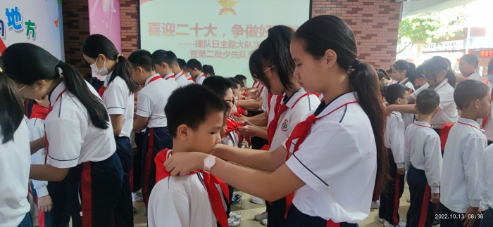 为贯彻落实《中共中央关于全面加强新时代少先队工作的意见》,进一步推动少先队党史学习教育走深走实,教育引导广大少先队员听党话、跟党走。在10月13日,少先队建队日73周年之际,喜迎二十大的召开,石岐太平小学少工委组织开展主题为“喜迎二十大,争做好队员”主题大队活动暨第二批少先队员入队仪式。