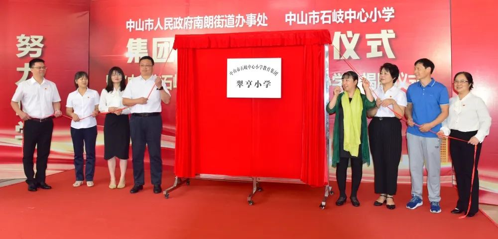 与会领导、嘉宾共同为“中山市石岐中心小学教育集团翠亨小学”揭牌,接着合照留念。
