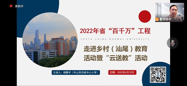 撰稿:杨静宇 审稿:郑秀明 二审:黄建喜 三审:周锦连 发布:区泳秋 为积极响应广东省中小学“百千万人才培养工程”培养学员走进乡村教育活动,充分发挥省级培养学员的示范引领和辐射带动作用,提高当地教师的教育教学能力,促进城乡教师交流,打造“教育联合体”,2022年5月19日上午,广东省“百千万人才培养工程”培养学员杨静宇开展“云送教”活动,为汕尾市海丰县平东中心小学的师生们带来了心理健康教育示范课《智止谣言》。