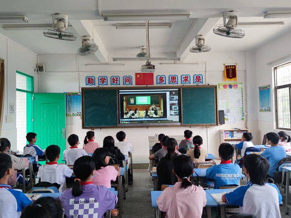 此次送教活动采用线上方式举行,平东中心小学五六年级的同学在教室里与杨老师进行连线,共上一节课。杨老师介绍了本课的主题,并询问同学们有无接触过谣言,请同学们现场判断部分网络信息的真伪,思考如何更好地辨别网络信息的真实性。随后同学们一起观看了《智止谣言》录播课,了解谣言的产生、特点、危害及如何用智慧的方法应对谣言。课后同学们分享了自己的观课感受及收获。平东中心小学的同学们积极参与课堂活动,认真观看,积极分享自己的看法和收获,效果良好。