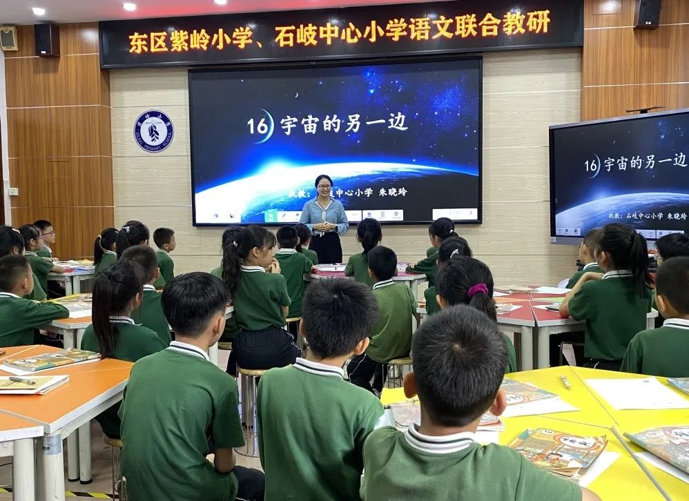 首先,朱晓玲老师和紫岭小学三(1)班的同学们一起上了研讨课——《宇宙的另一边》。朱老师从文本出发,用亲切的、启发性的语言,引领同学们走进想象的世界,体会了想象的神奇,还带领同学们发挥想象创造了一个又一个神奇的世界,感受了想象的魅力。