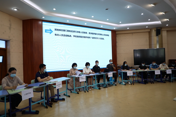 本次演练的模拟场景为:学校接报,某班同学A为新冠肺炎阳性病例密切接触者,后核酸检测阳性,经排查学校密切接触者280人。全体成员针对该情境的前期处置、校内应急处置、相关部门到校后的配合处置、 学校进程报告和应急响应终止等重要流程的重点环节进行了详细的桌面推演。