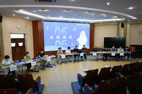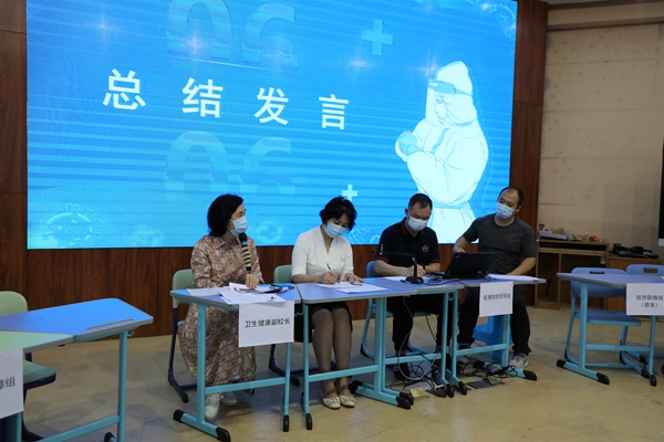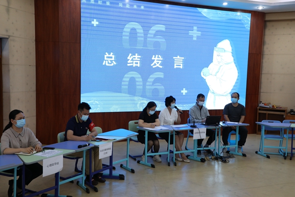 总结阶段,学校卫生健康副校长肖小华充分肯定了本次演练的效果。她认为本次演练能按照相关文件要求,涵盖特殊情境下应急处置的关键环节,也能按照预案迅速启动校内应急处置机制,有详细的任务和分工,还关注到了流调、转运、在线教学开展、后勤保障、心理疏导与家校沟通等方方面面的重点环节。学校在组织、实施疫情防控应急处置桌面演练过程中表现出了很强的执行力、科学性、专业性和可操作性。希望在接下来的工作中,进一步加强部门间的联动,优化各部门处置流程;细化工作职责,做到“责任到岗、任务到人”;建议学校要思考极端情境下,非寄宿制学校的后勤保障方面面临的严峻挑战。