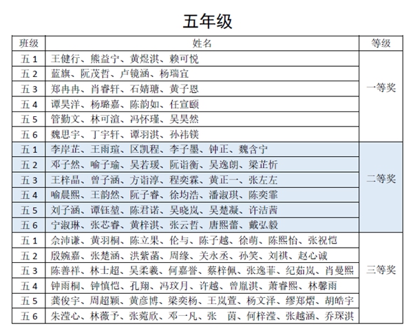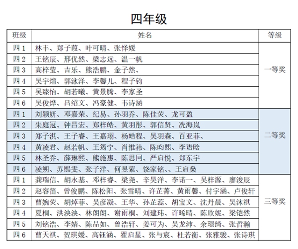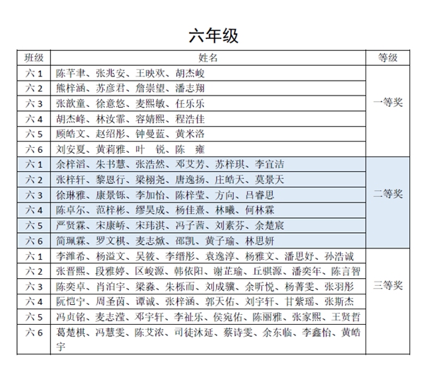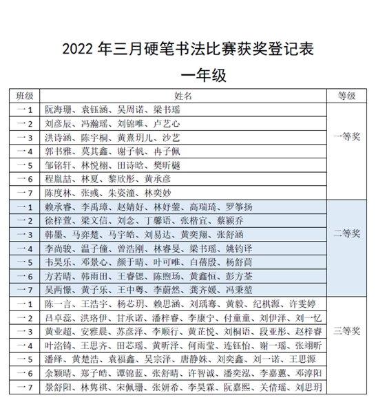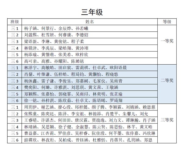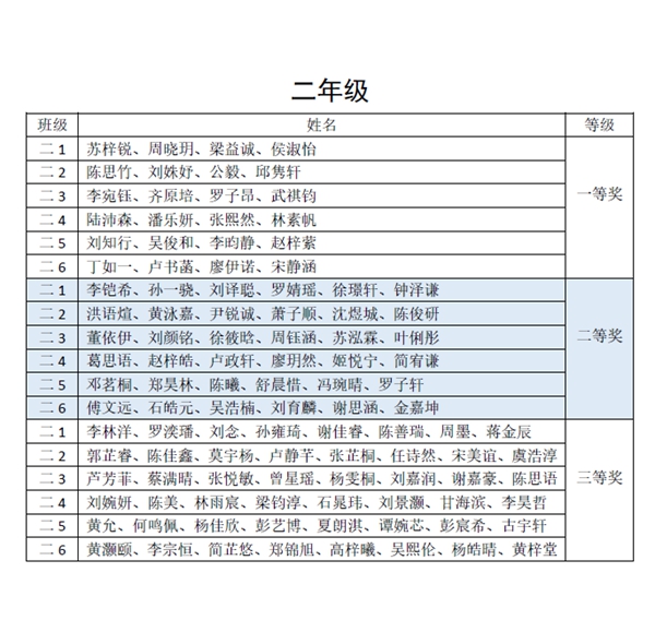 通过评委初评和交叉复评,以班级为单位,每班评出一等奖4幅,二等奖6幅,三等奖8幅。评委老师发现同学们的书法作品笔画遒劲,结构舒展,章法协调,在不断进步中。现将获奖名单和部分获奖作品展示出来,供大家欣赏。