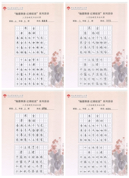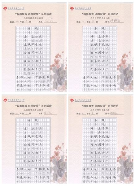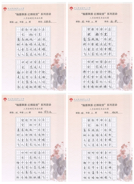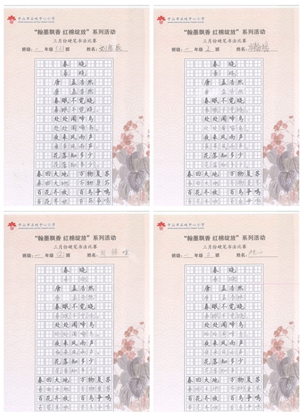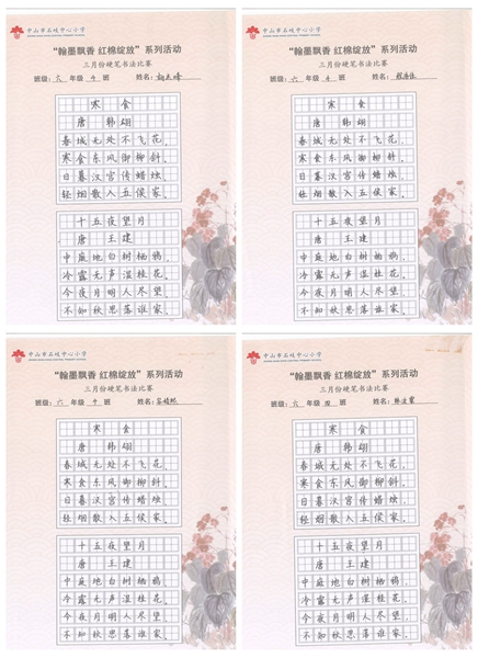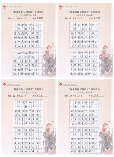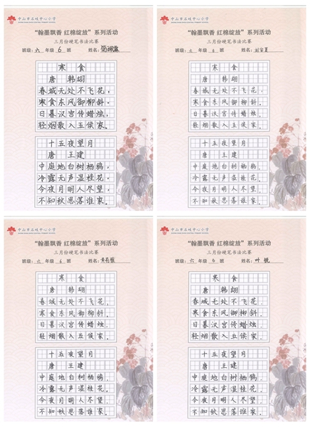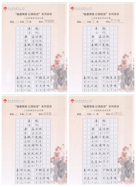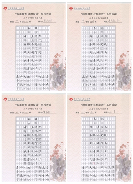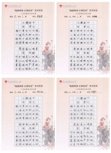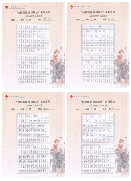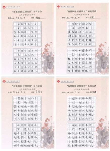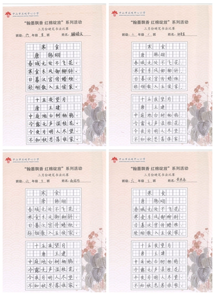 撰稿:公春江 审稿:王文儒 二审:黄建喜 三审:周锦连 发布:区泳秋 ——中山市石岐中心小学全校硬笔书法双月展获奖作品系列