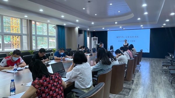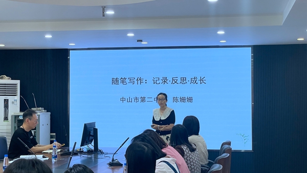研修活动分为两个部分。首先陈姗姗老师进行《记录·反思·成长》为主题的随笔撰写专题讲座。陈老师以自己随笔撰写的经历深入浅出地讲解了随笔撰写的方法和技巧。七十多页的课件,细致入微地讲解了随笔写作的意义、困惑和成效,让研修班成员们甚是佩服,同时也激发了大家坚持随笔写作的热情和进行教育研究的热忱。
