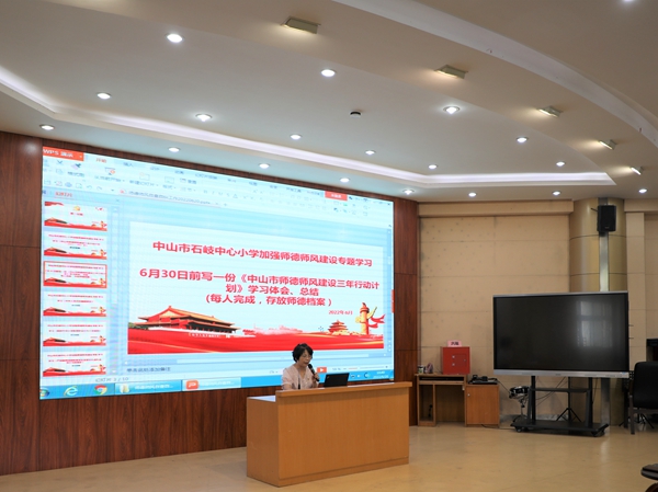 周锦连校长还带领全体教师重温学习了《中山市师德师风建设三年行动计划》、《中华人民共和国教师法》等师德师风建设文件精神,希望老师们贯彻落实省第十三次党代会精神,在本职岗位上创造出更多的成绩,为教育事业做出更多的贡献,推动学校高质量发展,以丰硕的成果迎接党的二十大胜利召开。