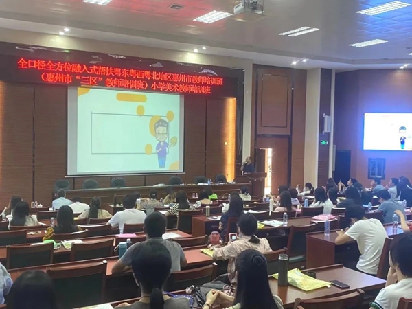 撰稿:龚宝香 审稿:唐鸿雁 二审:黄建喜 三审:周锦连 发布:区泳秋 为深入贯彻落实习近平总书记关于定点帮扶工作的重要指示精神,落实中山市教育系统东西帮扶协议。2022年6月16-17日,在中山市教师发展中心“三名”办公室的安排下,中山市名教师工作室主持人刘坚老师、中山市石岐中心小学龚宝香老师等4人,奔赴广东省惠东县开放大学,为惠州市“三区”(粤东粤西粤北)的美术教师开展讲座,进行现场课例点评、教学经验分享,与惠东线上学员交流等教研活动。