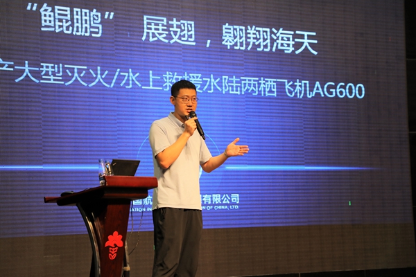 周沫宇老师给同学们分享了国产大型灭火、水上救援水陆两栖飞机“鲲龙”AG600。周老师给同学们详细介绍了AG600的生产制造过程,分享了全状态新构型灭火机——AG600飞机1003架。周老师还给同学们分享了AG600的应用场景——森林灭火、海上救援等功能。AG600是满足国家应急救援体系和自然灾害防治体系建设需要的重大航空装备。通过讲座学习,同学们真切感受到了“鲲鹏”展翅,翱翔海天的“鲲龙”AG600的巨大魅力。