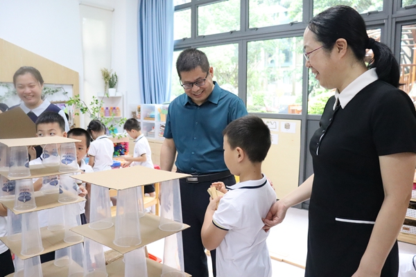 接着,石岐中心小学的老师在机关三幼郭园长的带领下参观了幼儿园,观摩了幼儿的教育活动。大家深切地感受到幼儿园在玩中学、学中玩的教育教学特点。