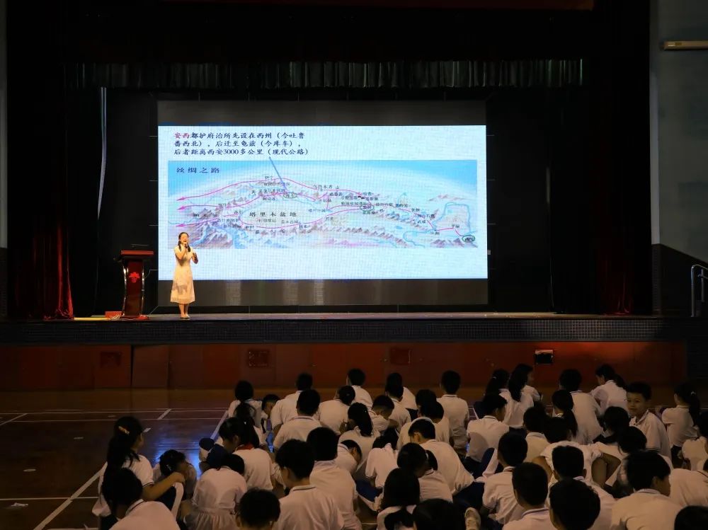 为了传承和发扬中华优秀传统文化,提高学生对中华经典诗文的欣赏能力,本学年石岐中心小学继续组织开展“中华经典诗文诵读活动”。2022年9月30日下午,学校邀请市教研室林晓洁老师为五、六年级学生开展了经典诗文赏析讲座——《诗词里的中国》。