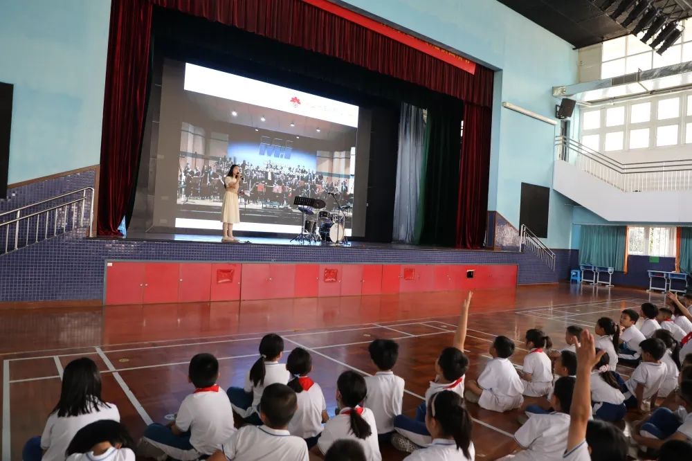 全体三年级同学参加了欣赏音乐会,本次欣赏会给学生普及了管乐器乐知识,通过演奏员现场演奏,让学生对长笛、黑管、萨克斯、小号、圆号、长号、上低音号、大号及打击乐等一些乐团常用乐器有更直观的感受和理解,同时也促进了学校管乐社团的发展。