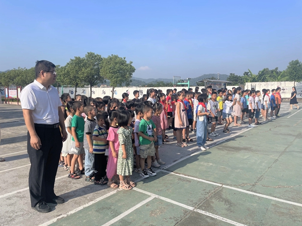 9月26日,石岐中心小学的行政和老师们早早来到龙寮小学,参加了学校的升旗仪式。在升旗仪式上,王校长向全校师生介绍了本学年的帮扶计划,希望两校密切配合、携手共进、共同发展。本学期,石岐中心小学为更好地改善龙寮小学校园基础设施,保证师生饮水卫生,在广东金尚智能电气有限公司的支持下,向龙寮小学捐赠了两台学生饮水机。同时,还向全校学生捐赠校服300套。每人一套冬装和一套夏装。