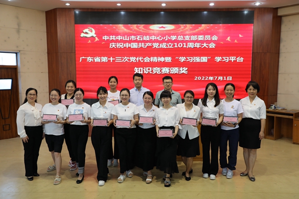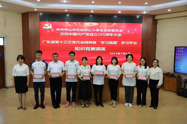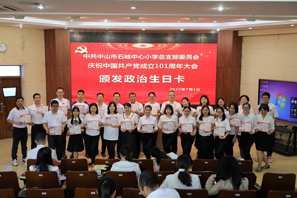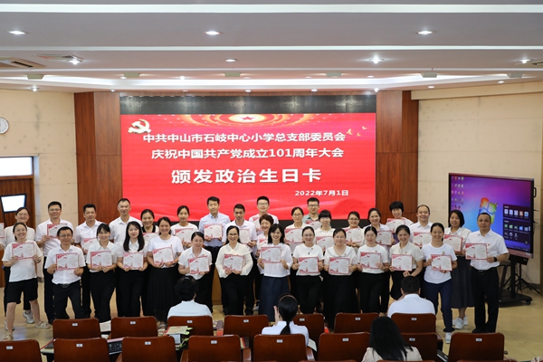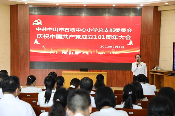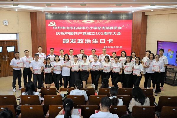 2022年7月1日上午,中共中山市石岐中心小学总支部委员会全体党员在学校三楼阶梯室隆重集会,庆祝中国共产党成立101周年。