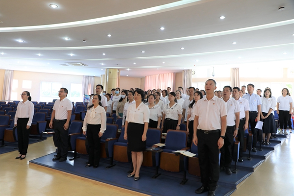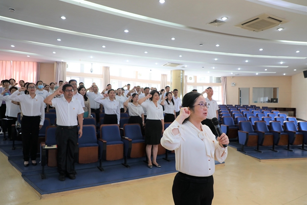 庆祝大会在庄严的国歌中拉开序幕。党总支书记梁丽文同志带领大家重温入党誓词,领学了第一议题——《我国教育最鲜亮的底色》,认真领会了习近平总书记的重要指示:“马克思主义是星空体育立党立国的根本指导思想,也是我国大学最鲜亮的底色。”