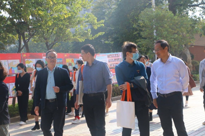 上午,在李正可校长带领下,督导组首先迈上“阳光大道”,一边凝神欣赏学生为庆祝建党100周年共同绘就的“百图颂中华”的作品,一边认真聆听德育处主任柯小敏解说学校文化。随后,督导组来到向上广场,观看线描画社团和水彩社团的书画展,两个社团的学生都用简单的绘画工具,完成了一幅幅意境优美的作品,给督导组带来了乐趣和美的享受。督导组走进中庭,欣赏了民乐社团的《花儿与少年》,欢快的乐曲给人们带来心灵的宁静,接着是高年级学生的口风琴表演,那宏大而整齐的口风琴演奏充分展示了学校推动“器乐进课堂”的成效。然后大家来到水墨室,惊叹于原本普通的墨色,在学生们浓淡相宜的笔触下,别有一番韵味,感叹于现代学生们对中国传统文化的热爱。国学园内,随着李晟赫老师指挥棒的挥舞,激昂的交响乐瞬间响起,十余种乐器共同演绎出动人的旋律,乐曲各声部层次突出,充满和谐之美。在观赏完低年级学生充满童心童趣的绘画后,督导组在庭院观赏合唱社团的表演,学生们清脆的歌声和优美的舞姿,让人们的心情也不禁跟着欢快起来。围棋社团的学生正在屏气凝神,棋盘之上的黑白双色是他们不见硝烟的战场。与此同时,搏击社团和武术社团的学生已经蓄势待发,他们的一招一式,翻转腾跃的灵活身影充满了力与美,中年级的武术操紧跟其后,一个个扎实的动作,一声声有力的呐喊,都代表了东方“六朗学子”的无限活力!最后,督导组来到棒球场,观看东方小学传统体育项目棒球的日常训练,棒球场上传接球练习、跑垒练习和挥棒练习,一切都是井井有条,督导组无不为球员们精彩的表现赞不绝口,拍手叫绝。