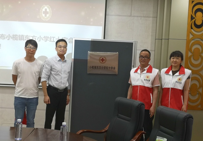在全体成员热烈的掌声中,小榄镇红十字会秘书长何圣棕同志、小榄镇红十字会成员梁宝明同志、东方小学李正可校长、东方小学张巍副校长共同上台进行揭牌仪式,正式宣布小榄镇东方小学红十字成立了!