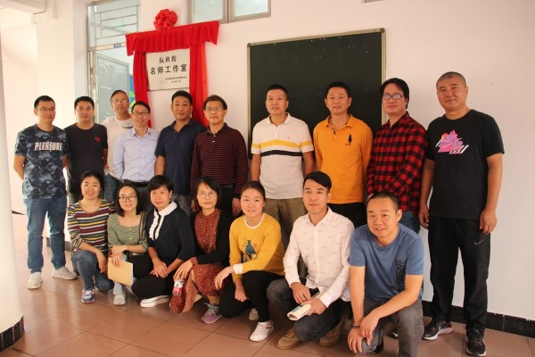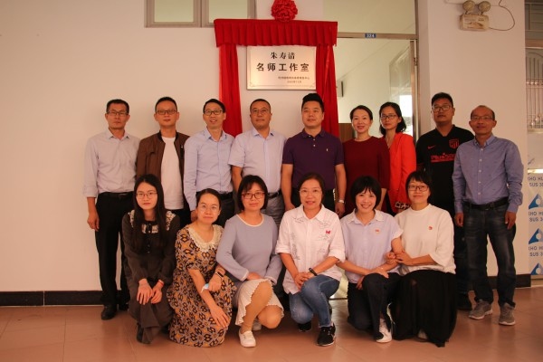最后,三位教研员和领导一起为“阮班俊名师工作室”、“朱寿清名师工作室”、“黄瑞媛名班主任工作室”揭牌,并与主持人和工作室成员合影留念。