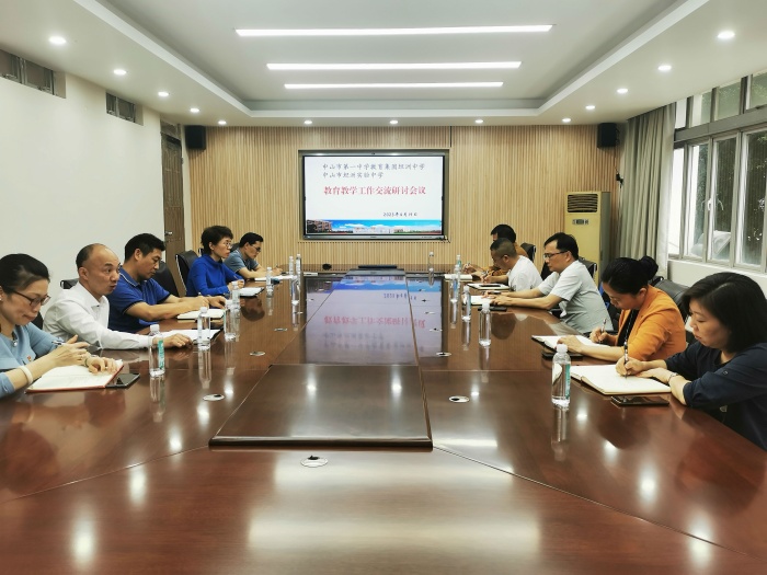 4月19日下午,雨后初晴。中山市第一中学教育集团坦洲中学、中山市坦洲实验中学教育教学工作交流研讨会,在坦洲实验中学行政会议室顺利召开。坦洲镇教育和体育事务中心副主任阮班俊、中山市第一中学教育集团坦洲中学和中山市坦洲实验中学领导班子参加了本次活动。