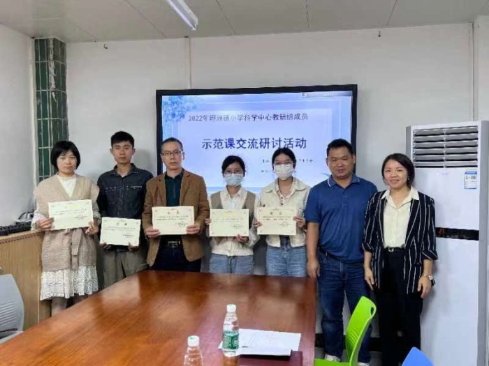 最后,坦洲镇教育和体育事务中心教研员张超金为本次研讨会的承办学校--安阜小学颁发证书,坦洲镇小学科学中心教研组组长陈重权为两位授课老师颁发证书。