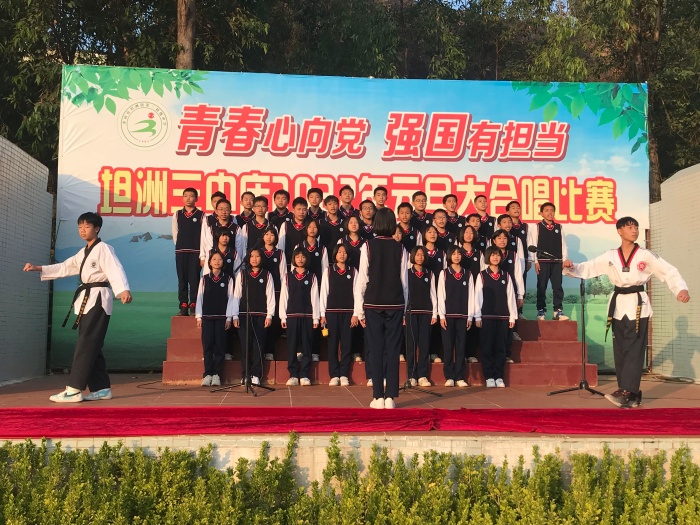 为传承中国历史,发扬中国文化,弘扬主旋律,宣传正能量,12月31日下午,中山市坦洲镇第三初级中学全校师生在操场开展以“青春心向党、强国有担当”为主题的大合唱比赛。