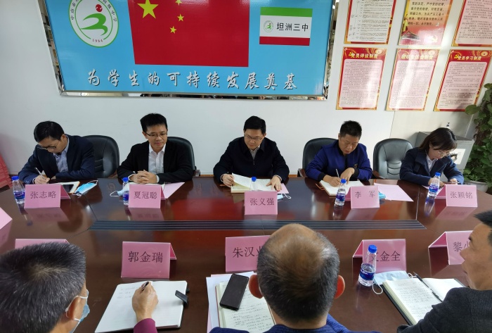 2021年12月18日下午,中山市坦洲镇党委书记张义强、党委委员李军、夏冠聪、教体文旅局局长张颖铭、教育和体育事务中心主任张志略到坦洲镇第三初级中学开展调研工作。