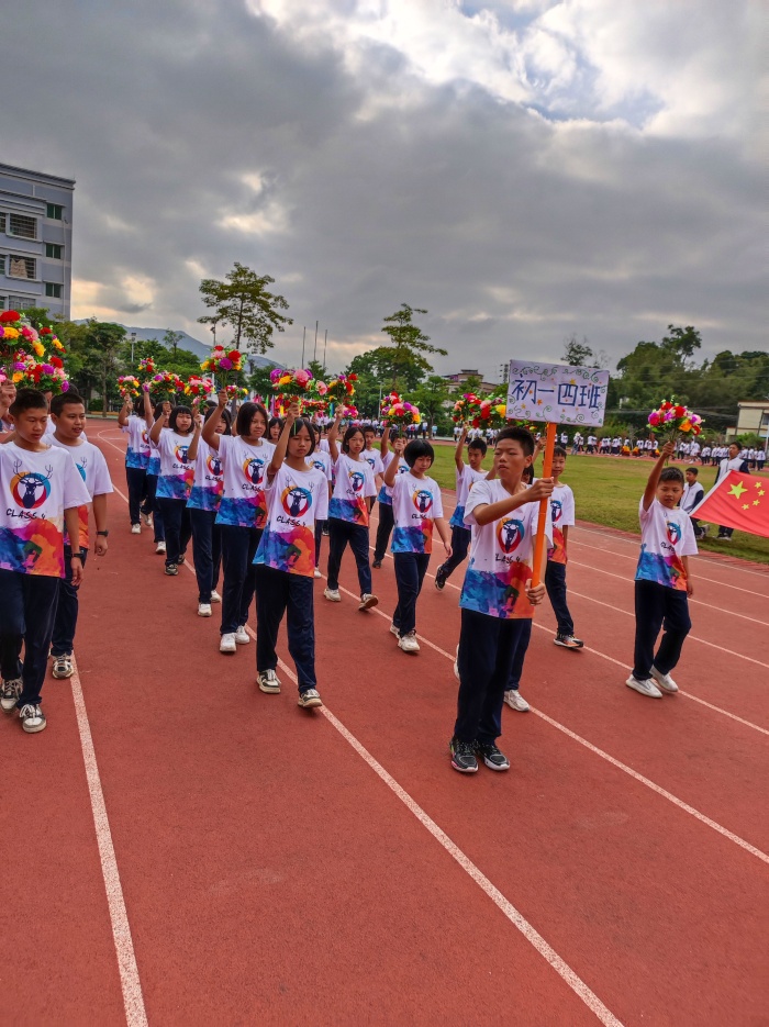 伴随着铿锵有力的运动员进行曲,国旗校旗方阵、鼓乐队、鲜花队、彩旗队、以及各班运动员方阵,衣着整齐,面带笑容,精神抖擞,踏着整齐的步伐向主席台走来。各班表演了精彩纷呈的节目,主题鲜明,形式多样,充分展示着属于青春的风采与活力。初二(3)班全体同学朗诵的《少年中国说》,更是将全场气氛推向了高潮。