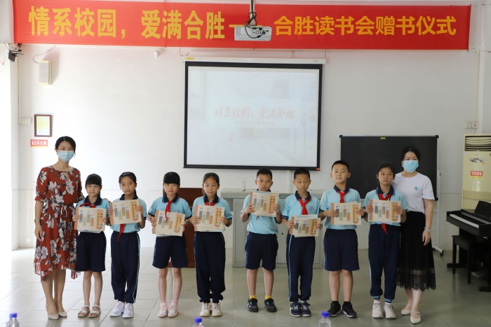 2022年4月27日,广东合胜腾翼集团有限公司(合胜集团)向坦洲镇合胜小学捐赠了中英文绘本共350册。合胜小学举办了以“情系校园,爱满合胜”为主题的图书捐赠仪式,表达对广东合胜腾翼集团有限公司的感谢之情。坦洲镇合胜读书会负责人邱传如、坦洲镇合胜百货党支部书记杨莹莹、坦洲镇合胜小学副校长卢云、坦洲镇合胜小学教导主任吴桂清参加此次捐赠仪式。