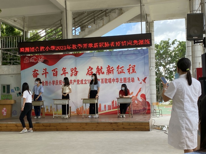 为科学、规范、高效、有序的开展新型冠状病毒感染肺炎疫情防控工作,保障全校师生的生命安全和身体健康,强化师生的疫情安全和自我防范意识,全面提升全体师生的疫情防控应急能力,2021年8月30日上午,合胜小学开展了“2021学年坦洲镇合胜小学新冠肺炎疫情应急演练”活动。全体教职员工参加了此次演练,本次模拟演练由学校教职工参与扮演老师、学生等角色。通过现场情景演示,结合旁白解说的方式,将校园疫情防控工作的每一个关键节点形象真实地演练出来。
